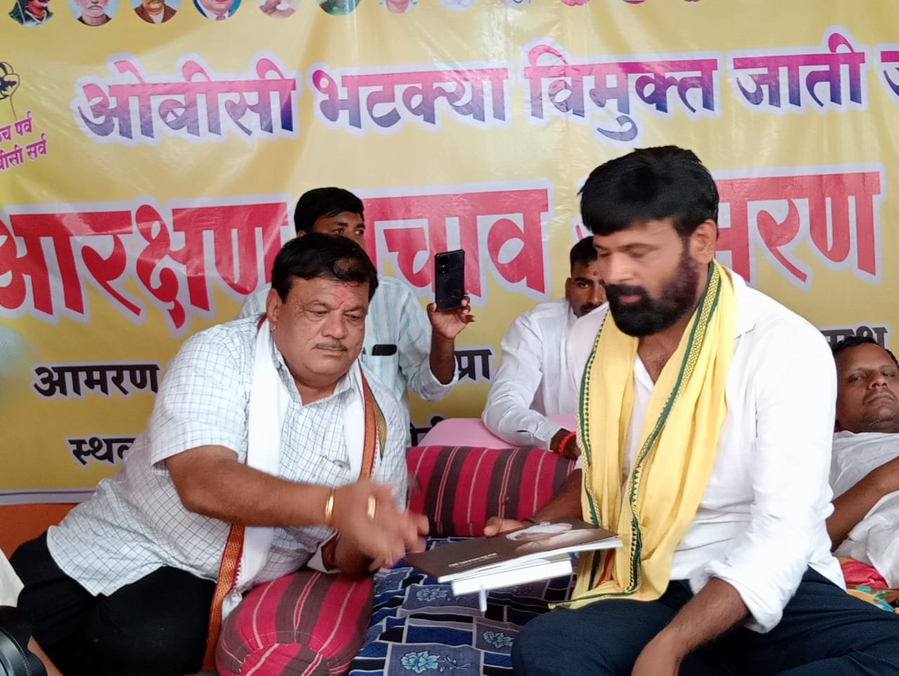 राष्ट्रवादी काँग्रेस पार्टीचे (शरदचंद्र पवार गट) राज्य सरचिटणीस ड प्रतापकाका ढाकणे यांनी देखील काल दिनांक 19 रोजी वडीगोद्री या ठिकाणी भेट देऊन प्रा.लक्ष्मण हाके व नवनाथ वाघमारे यांच्या प्रकृतीची विचारपूस केली,या वेळी त्यांनी संघर्ष योध्दा स्व.बबनरावजी ढाकणे यांच्या आयुष्यावरील पुस्तक भेट दिले.