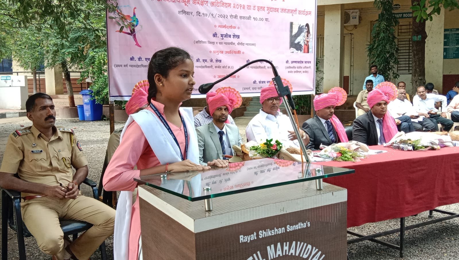 या कार्यक्रमासाठी डी एम गिरी, एम जे शेख, आर व्ही थाईल प्रथम वर्ग न्याय दंडाधिकारी कर्जत न्यायालय हेही उपस्थित होते.