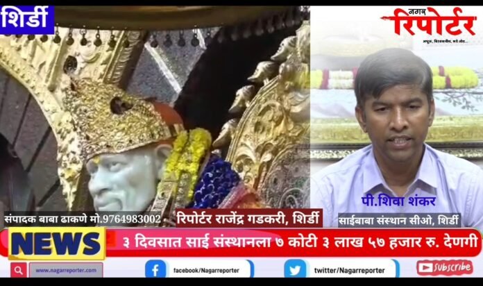 Maharashtra (Shirdi) – शिर्डी साईबाबा संस्थानला दि.२ ते दि. ४ जुलै या गुरु पौर्णिमा उत्सव काळात ७ कोटी ३ लाख ५७ हजार २४८ रुपये इतकी देणगी प्राप्त झाली, असल्याची माहिती संस्थानचे मुख्य कार्यकारी अधिकारी पी.शिवा शंकर यांनी पत्रकार परिषदेत दिली .