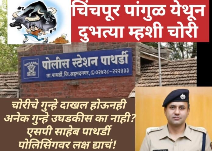 चिंचपूर पांगुळ येथून दुभत्या म्हशी चोरी ; चोरीचे गुन्हे दाखल होऊनही अनेक गुन्हे उघडकीस का नाही? एसपी साहेब पाथर्डी पोलिसांच्या पोलिसिंगवर लक्ष द्याचं !