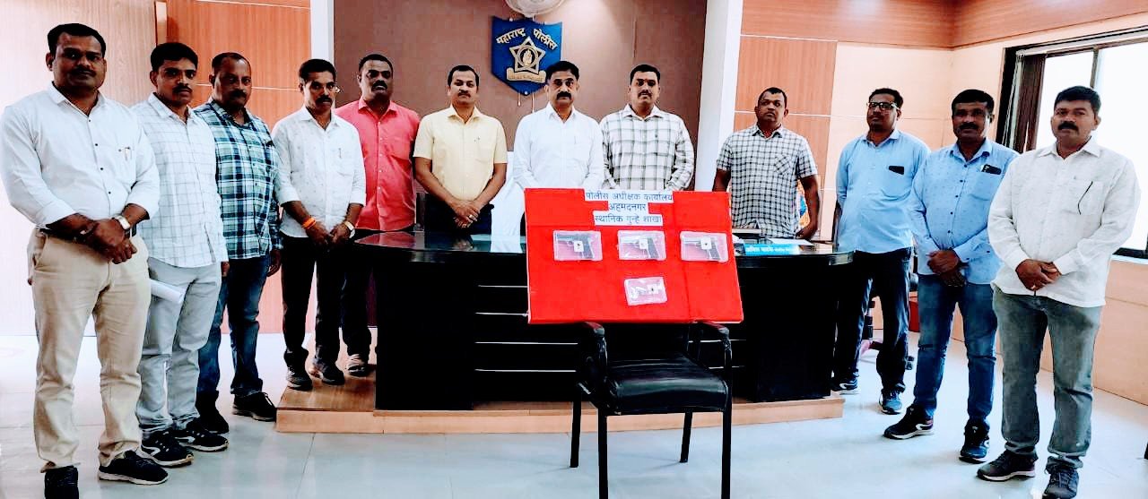 शहरातील तपोवनरोड येथे विक्री करण्याचे उद्देशाने ३ गावठी कट्टे व २ जिवंत काडतुस जवळ बाळगणार-या दोघांना पकडून त्याच्याकडून ९० हजार ४०० रुपयांचा मुद्देमाल जप्त करण्याची कारवाई मावळते अहमदनगर एलसीबी पोनि अनिल कटके यांच्या एलसीबी टिम’ने वंशातर करून केली आहे.