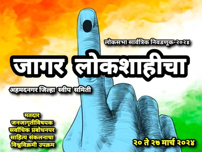 अहमदनगर : जिल्हाधिकारी तथा जिल्हा निवडणूक अधिकारी,अहमदनगर यांच्या निर्देशानुसार अहमदनगर-शिर्डी लोकसभा मतदारसंघांमध्ये होणाऱ्या लोकसभा सार्वत्रिक निवडणूक -2024 मध्ये मतदार जनजागृतीसाठी अशोक कडूस (स्वीप नोडल अधिकारी तथा शिक्षणाधिकारी-माध्य.जि.प.अहमदनगर)यांच्या संकल्पनेतून तसेच भास्कर पाटील(शिक्षणाधिकारी प्राथ.जि.प.अहमदनगर) यांच्या मार्गदर्शनातून अहमदनगर जिल्हा परिषदेच्या शिक्षण विभागाच्या वतीने जिल्ह्यातील समस्त शाळांमध्ये मतदार जनजागृतीच्या विविध उपक्रमांचा “जागर लोकशाहीचा”हा महोत्सव 20 ते 27 मार्च 2024 या कालावधीमध्ये साजरा होणार असून लाखोंच्या संख्येने मतदार जनजागृतीविषयक फोटो/व्हिडिओ/वृत्तपत्रे कात्रणे /पोस्टर/बॅनर /लिंक्स आदी साहित्याच्या जगातील सर्वाधिक संकलनाचा अहमदनगर जिल्हा स्वीप समितीचा मानस आहे.याकरिता गिनीज बुक ऑफ वर्ल्ड रेकॉर्डसह अन्य जागतिक विश्वविक्रमांसाठी आपण नामांकन देखील दाखल केले आहे.