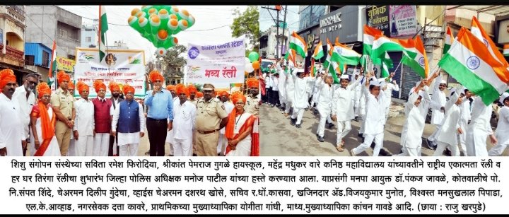 शिशु संगोपन संस्थेच्या सविता रमेश फिरोदिया, श्रीकांत पेमराज गुगळे हायस्कूल, महेंद्र मधुकर वारे कनिष्ठ महाविद्यालय यांच्यावतीने राष्ट्रीय एकात्मता रॅली व हर घर तिरंगा रॅलीचा शुभारंभ जिल्हा पोलिस अधिक्षक मनोज पाटील यांच्या हस्ते करण्यात आला. याप्रसंगी मनपा आयुक्त डॉ.पंकज जावळे, कोतवालीचे पो.नि.संपत शिंदे, चेअरमन दिलीप गुंदेचा, व्हाईस चेअरमन दशरथ खोसे, सचिव र.धों.कासवा, खजिनदार अॅड.विजयकुमार मुनोत, विश्वस्त मनसुखलाल पिपाडा, एल.के.आव्हाड, नगरसेवक दत्ता कावरे, प्राथमिकच्या मुख्याध्यापिका योगीता गांधी, माध्य.मुख्याध्यापिका कांचन गावडे आदि उपस्थित होते.