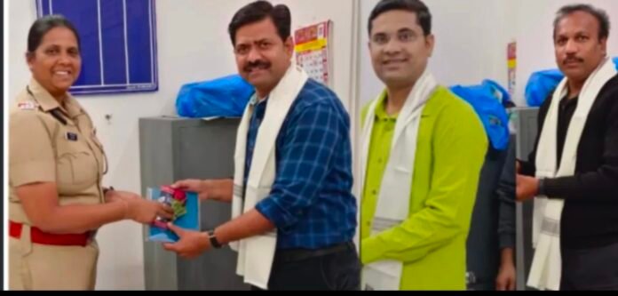 पत्रकार दिनानिमित्त शुक्रवारी (दि.६) सायंकाळी शहरातील तोफखाना पोलिस ठाण्याच्या पोनि ज्योती गडकरी मॅडम यांच्या हस्ते अहमदनगर शहरातील वृत्तपत्र, इलेक्ट्रॉनिक मिडिया व सोशल मीडिया संपादक, उपसंपादक, बातमीदार यांचा शाल, श्रीफळ,पेन व डायरी देऊन सत्कार करुन पत्रकार दिनाच्या शुभेच्छा दिल्या. यावेळी तोफखाना गुन्हे शोध विभागाचे सपोनि सोळंके, पोकाॅं जपे, शिरसाट आदिंसह पोलिस कर्मचारी उपस्थित होते.