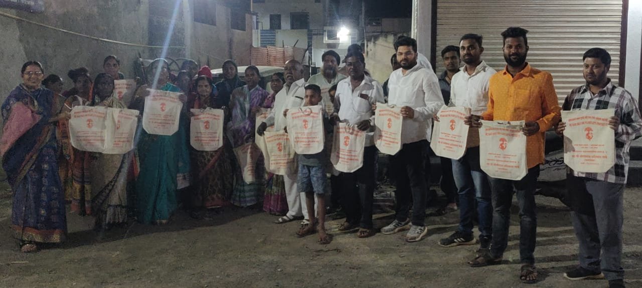 प्रभाग क्रमांक ४ मध्ये नगरसेवक योगीराज गाडे यांच्या पुढाकारातून व स्थानिक विकास निधीतून फकीरवाडा व गौरव नगर येथे कापडी पिशव्यांचे वाटप करण्यात आले. टप्प्याटप्प्याने संपूर्ण प्रभागात या कापडी पिशव्या वाटण्यात येणार आहे प्लास्टिक पिशव्यांच्या वापरामुळे पर्यावरणावर विपरीत परिणाम होत आहे सरकारने प्लास्टिक पिशव्यांवर बंदी घालू नही अनेक ठिकाणी प्लास्टिक पिशव्यांचा मोठ्या प्रमाणात वापर होत आहे. हे थांबविण्यासाठी लोकप्रतिनिधी या नात्याने एक पाऊल आपण पुढे टाकत असून प्रभागातील प्रत्येक घरात कापडी पिशवी आमचे सहकारी नेऊन देत आहे .असे नगरसेवक योगीराज गाडे यांनी यावेळी सांगितले.प्रभाग क्रमांक ४ मध्ये नगरसेवक योगीराज गाडे यांच्या पुढाकारातून व स्थानिक विकास निधीतून फकीरवाडा व गौरव नगर येथे कापडी पिशव्यांचे वाटप करण्यात आले . टप्प्याटप्प्याने संपूर्ण प्रभागात या कापडी पिशव्या वाटण्यात येणार आहे प्लास्टिक पिशव्यांच्या वापरामुळे पर्यावरणावर विपरीत परिणाम होत आहे सरकारने प्लास्टिक पिशव्यांवर बंदी घालू नही अनेक ठिकाणी प्लास्टिक पिशव्यांचा मोठ्या प्रमाणात वापर होत आहे. हे थांबविण्यासाठी लोकप्रतिनिधी या नात्याने एक पाऊल आपण पुढे टाकत असून प्रभागातील प्रत्येक घरात कापडी पिशवी आमचे सहकारी नेऊन देत आहे, असे नगरसेवक योगीराज गाडे यांनी यावेळी सांगितले.