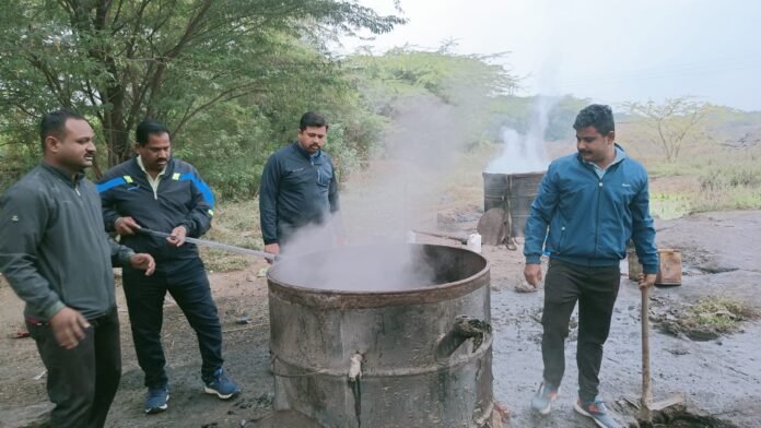 याबाबत समजलेली माहिती अशी की,नेप्ती हद्दीत तीन गावठी हातभट्टीचे अड्डे उध्वस्त करण्यात आल्या. या कारवाई मध्ये ८८ हजार रुपये किमतीचे ११०० लिटर गावठी हातभट्टी चे कच्चे रसायन व ५ हजार रुपये किमतीची ५० लिटर गावठी हातभट्टीची तयार दारू जागीच नष्ट करण्यात आली. आहे. असा एकूण ९३ हजार रुपये किमतीचा प्रोव्हिसन गुन्ह्याचा मुद्द्यामाल व रसायनाची प्लॅस्टिक टिपाड व बॅरल व ड्रम जागीच नष्ट करण्यात आले.