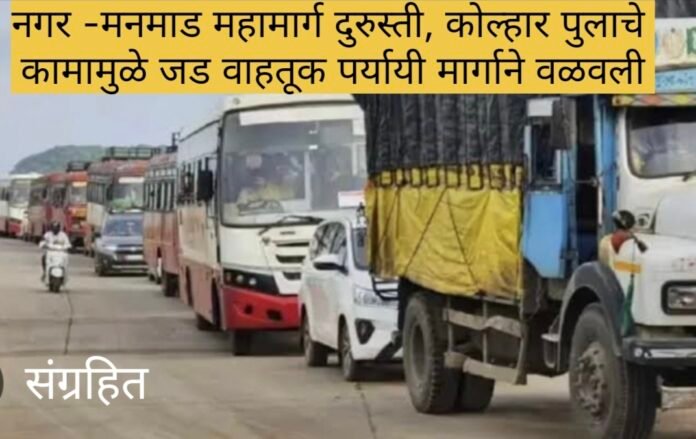 नगर -मनमाड महामार्ग दुरुस्ती, कोल्हार पुलाचे कामामुळे जड वाहतूक पर्यायी मार्गाने वळवली