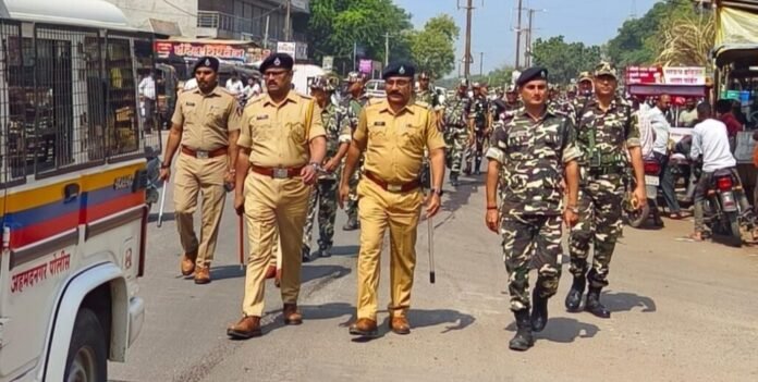 आगामी विधानसभा निवडणुकी दरम्यान कायदा सुव्यवस्था अबाधित रहावी. शांतता रहावी. सर्व सामान्य नागरिकांना सुरक्षित व भयमुक्त वाटावे तसेच निवडणूकी दरम्यान काळात होणारे सभा, प्रचार, मतदान, मतमोजणी इत्यादी प्रक्रिया शांततेत व सुरळीत पार पडावी या करिता पोलीस प्रशासन सज्ज असून कोणताही अनुचित प्रकार घडू न होता, कायदा सुव्यवस्था अबाधित राखण्यासाठी पोलिस प्रशासनाकडून संचलन करण्यात आले.
