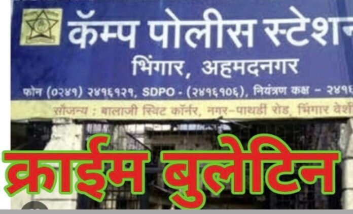 पुढील कारवाई एसपी राकेश ओला, अपर जिल्हा पोलिस अधीक्षक प्रशांत खैरे व नगर शहर डिवायएसपी अनिल कातकाडे यांच्या मार्गदर्शनाखाली भिंगार कॅम्प पोलीस ठाण्याचे सपोनि डि.एस.मुंडे यांच्या सूचनेनुसार पोना आर.टी.गोरे हे करीत आहेत.