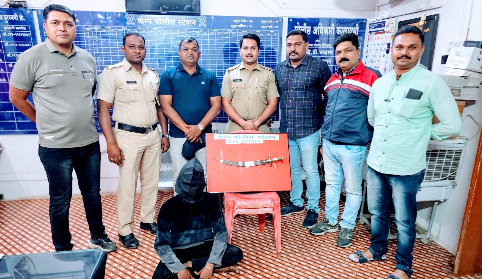 याबाबत समजलेली माहिती अशी की, दि.२८ जानेवारी २०२४ रोजी भिंगार पोलीस ठाण्याचे सपोनि योगेश राजगुरु यांना माहिती मिळाली की, मुकुदंनगर येथील इंडिया बेकरीच्या पाठीमागे एक इसम त्याचे हातात धारदार तलवार अवैधरित्या घेऊन फिरत आहे, आता गेल्यास मिळून येईल अशी खात्रीशिर माहिती मिळाली. सपोनि राजगुरु यांनी तात्काळ भिंगार कॅम्प् पोलीस ठाण्याचे तपास पथकातील अंमलदार यांना माहिती देऊन त्या ठिकाणी जाऊन खात्री करुन कारवाई करण्याचे आदेशीत केल्याने भिंगार कॅम्प् पोलीस ठाण्याचे तपास पथकातील अंमलदारांनी माहिती प्रमाणे ठिकाणी जाऊन सापळा रचून त्या संबंधितास हा पळून जाण्याचे तयारीत असतांना त्यास शिताफिने ताब्यात घेतले. त्याचे हातात असलेली एक धारदार तलवार जागीच जप्त करण्यात आली. त्यास त्याचे नाव गाव विचारले असता त्याने त्याचे नाव अरमान नईम शेख (वय १९ रा गजानन कॉलनी, मुकुंदनगर अहमदनगर) असे असल्याचे सांगितले. त्याच्याविरुद्ध भिंगार कॅम्प पोलीस ठाण्यात गुरनं ६५/२०२४ आर्म अॅक्ट ४/२५ प्रमाणे गुन्हा दाखल करण्यात आला आहे. आरोपीविरुद्ध खालील प्रमाणे गुन्हा दाखल आहे.