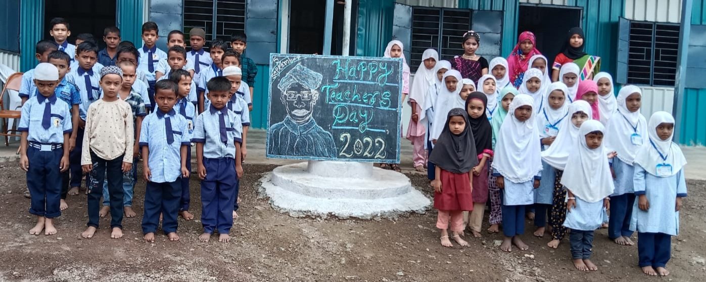 सुरवातीस डॉ.सर्वपल्ली राधाकृष्णन व विद्येची देवता सरस्वती प्रतिमांचे पूजन शाळेच्या मुख्याध्यापिका सौ. आसमा सय्यद मॅडम व ज्येष्ठ शिक्षिका हदिया बागवान मॅडम यांचे हस्ते करण्यात आले.यावेळी शिक्षक दिनाचे महत्त्व व डॉ.सर्वपल्ली राधाकृष्णन यांच्या जीवन कार्याचा आढावा शहाणा खान मॅडम यांनी प्रस्ताविकातून घेतला.यावेळी शाळेच्या मुख्याध्यापिका आसमा सय्यद मॅडम, हादिया बागवान मॅडम,शहाणा खान मॅडम,सना बेग मॅडम,फैमिदा शेख मॅडम यांनी शिक्षकदिनानिमित्त आपले विचार व्यक्त केले.शिक्षकांचे योगदान सामजिक,शैक्षणिक क्षेत्रात खूप मोठे आहे.आज आपण जे घडलो ते आपल्या शिक्षकांमुळेच म्हणून त्यांचा हा विचार,ध्येय प्रामाणिकपणे पुढे चालवून आपण सर्व विद्यार्थ्यांना चांगले शिक्षण देऊन घडवू असे प्रतिपादन शाळेच्या मुख्याध्यापिका आसमा सय्यद मॅडम यांनी आपल्या अध्यक्षीय भाषणात नमूद केले.यावेळी विद्यार्थी मुख्याध्यापक जुबेर शेख,विद्यार्थी शिक्षक जिशान पठाण, आतिफ सय्यद,आर्शिया पठाण,फिजा रेन,यास्मिन शेख,रुस्तुम पठाण, खदिजा काझी, समीर पठाण, फिरदोस पठाण यांचा मान्यवरांच्या हस्ते सत्कार करण्यात आला.कार्यक्रमाचे सूत्रसंचालन शहाणा खान मॅडम यांनी केले तर सना बेग मॅडम यांनी उपस्थित मान्यवरांचे आभार मानले.