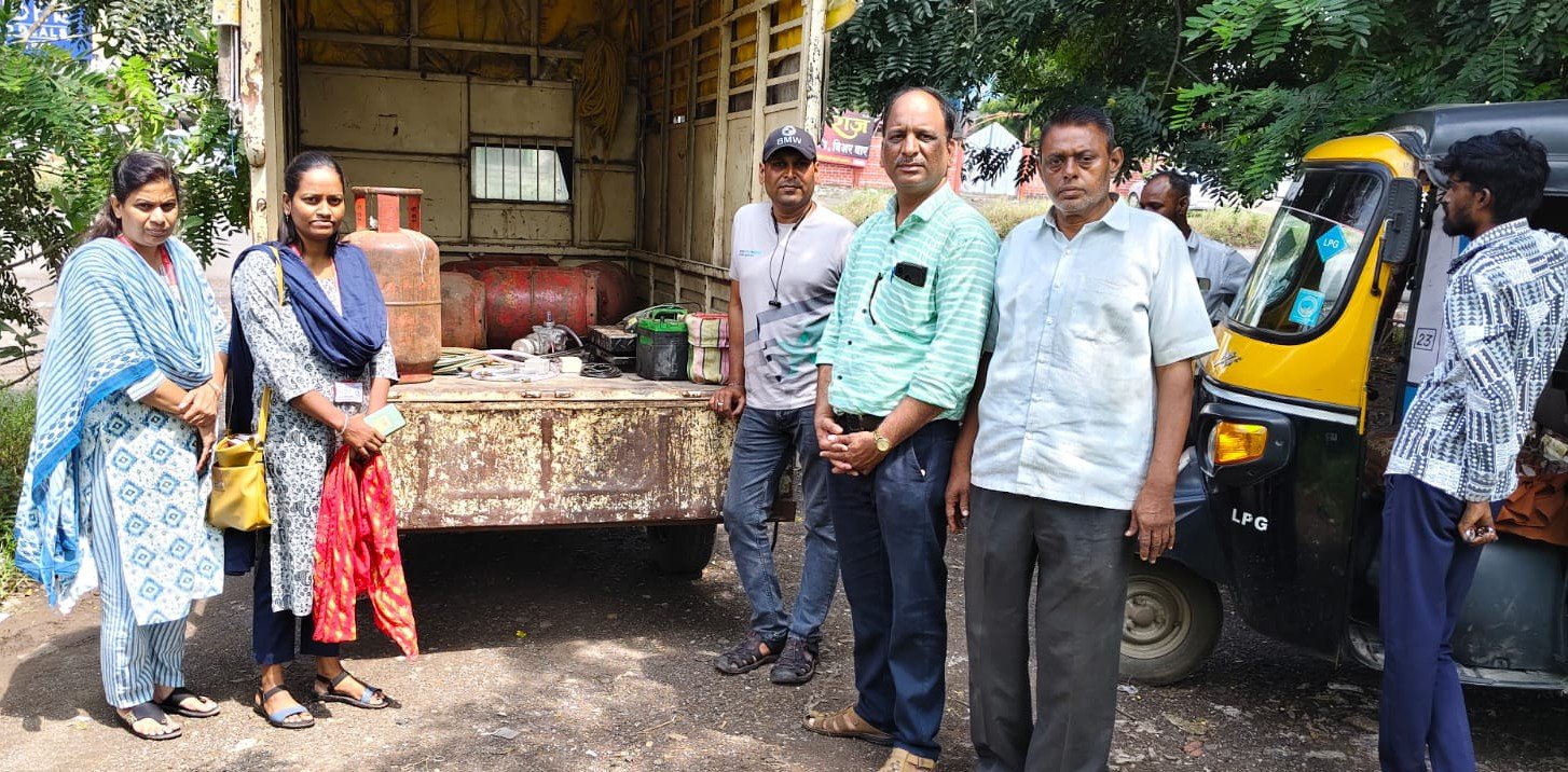 त्या अनुषंगाने घरगुती गॅस सिलिंडरचा गैरवापर करणा-यांविरुद्ध कारवाई करण्यात एमआयडीसी पोलीस स्टेशनच्या हद्दीत सुरू असणाऱ्या अवैध रिपेरिंग सेंटरवर सपना भोवते धान्य वितरण अधिकारी, सेल इन्स्पेक्टर बेले अव्वल कारकून घोलप अनंता मुळे यांच्यासह ग्राहक दक्षता कल्याण फाउंडेशनचे अध्यक्ष नितीन सोळंके यांच्या आदेशानुसार झोनल पी.आर. औ रवींद्र ब्राह्मणे , कृष्णा पवार यांनी