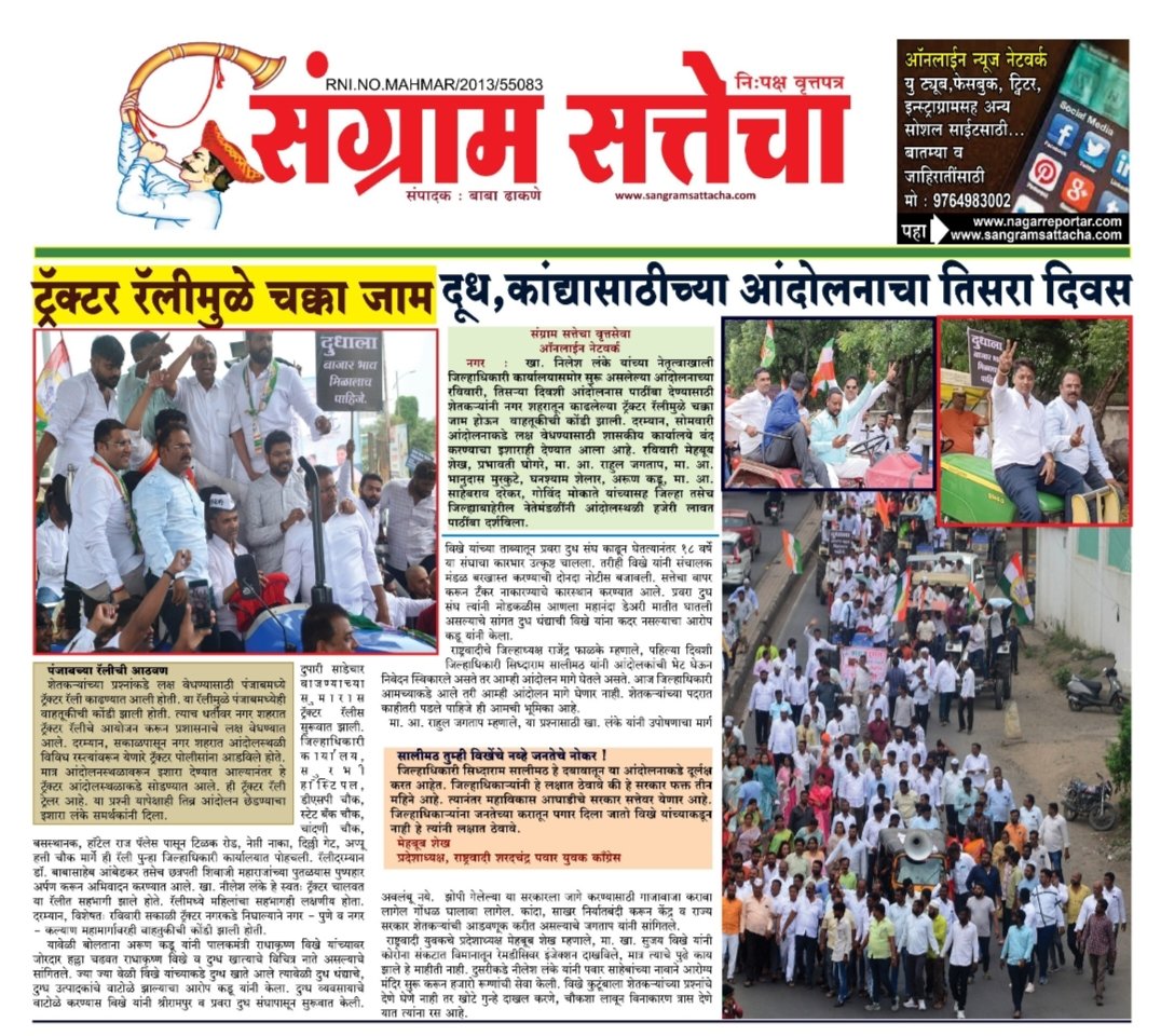 Homeअहमदनगर जिल्हा अहमदनगर जिल्हामहाराष्ट्रराजकारण शेतकऱ्यांच्या मागणीसाठी ट्रॅक्टर रॅली By baba dhakane 08/07/2024 0 98 WhatsAppFacebookTwitterTelegramPinterestLinkedinReddItTumblrDigg Share WhatsAppFacebookTwitterTelegramPinterestLinkedinReddItTumblrDigg Previous articleशेवगाव नगर परिषद मधील अनागोंदीची चौकशी व्हावी : अरुण मुंडेNext articleअखेर शेतकऱ्यांच्या आंदोलनास्थळी मंत्री विखे पा., जयंत पाटील यांची रात्री उशिराने भेट… baba dhakanehttps://sangramsattacha.in Related Articles महाराष्ट्र कोपरगावातील नरभक्षक बिबट्या अखेर ठार, 15 दिवसांत घेतलेला दोघांचा जीव अहमदनगर जिल्हा बुऱ्हाणनगर येथे माजीमंत्री आमदार शिवाजीराव कर्डिले यांचा शोकाकुल वातावरणात दशक्रियाविधी अहमदनगर जिल्हा मंत्री कोकाटेकडून कर्डीले कुटुंबीयांचे सांत्वन LEAVE A REPLY Cancel reply Comment: Please enter your comment! Name:* Please enter your name here Email:* You have entered an incorrect email address! Please enter your email address here Website: Save my name, email, and website in this browser for the next time I comment. Δ Stay Connected0FansLike3,912FollowersFollow22,800SubscribersSubscribe - Advertisement - Latest Articles महाराष्ट्र कोपरगावातील नरभक्षक बिबट्या अखेर ठार, 15 दिवसांत घेतलेला दोघांचा जीव अहमदनगर जिल्हा बुऱ्हाणनगर येथे माजीमंत्री आमदार शिवाजीराव कर्डिले यांचा शोकाकुल वातावरणात दशक्रियाविधी अहमदनगर जिल्हा मंत्री कोकाटेकडून कर्डीले कुटुंबीयांचे सांत्वन महाराष्ट्र केंद्रीय गृहमंत्री अमित शाह यांनी घेतले श्री साईबाबा समाधीचे दर्शन क्राईम Load more