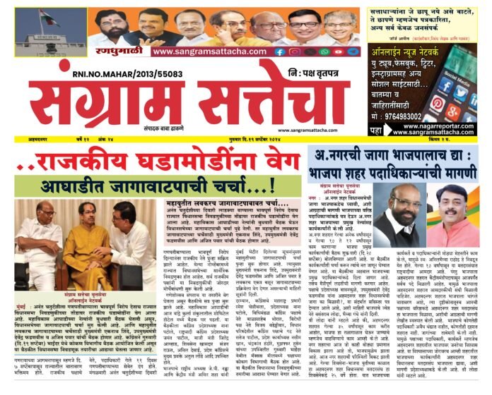 Homeअहमदनगर जिल्हा अहमदनगर जिल्हामहाराष्ट्र संग्राम सत्तेचा वृत्तसेवा By baba dhakane 19/09/2024 0 83 WhatsAppFacebookTwitterTelegramPinterestLinkedinReddItTumblrDigg Share WhatsAppFacebookTwitterTelegramPinterestLinkedinReddItTumblrDigg Previous articleसहजयोग ध्यान साधनेने सुप्त कलागुणांना वाव मिळतो ः सौ. वीणा बोज्जाNext articleकोपरगाव गोळीबाराच्या गुन्ह्यातील ८ आरोपींना ताब्यात ; नगर एलसीबी व कोपरगाव शहर पोलीसांनी संयुक्त कारवाई baba dhakanehttps://sangramsattacha.in Related Articles महाराष्ट्र कोपरगावातील नरभक्षक बिबट्या अखेर ठार, 15 दिवसांत घेतलेला दोघांचा जीव अहमदनगर जिल्हा बुऱ्हाणनगर येथे माजीमंत्री आमदार शिवाजीराव कर्डिले यांचा शोकाकुल वातावरणात दशक्रियाविधी अहमदनगर जिल्हा मंत्री कोकाटेकडून कर्डीले कुटुंबीयांचे सांत्वन LEAVE A REPLY Cancel reply Comment: Please enter your comment! Name:* Please enter your name here Email:* You have entered an incorrect email address! Please enter your email address here Website: Save my name, email, and website in this browser for the next time I comment. Δ Stay Connected0FansLike3,912FollowersFollow22,800SubscribersSubscribe - Advertisement - Latest Articles महाराष्ट्र कोपरगावातील नरभक्षक बिबट्या अखेर ठार, 15 दिवसांत घेतलेला दोघांचा जीव अहमदनगर जिल्हा बुऱ्हाणनगर येथे माजीमंत्री आमदार शिवाजीराव कर्डिले यांचा शोकाकुल वातावरणात दशक्रियाविधी अहमदनगर जिल्हा मंत्री कोकाटेकडून कर्डीले कुटुंबीयांचे सांत्वन महाराष्ट्र केंद्रीय गृहमंत्री अमित शाह यांनी घेतले श्री साईबाबा समाधीचे दर्शन क्राईम Load more