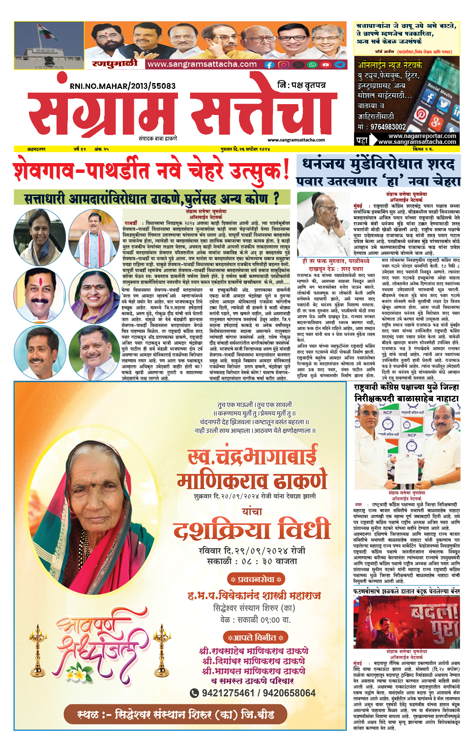 Homeमहाराष्ट्र महाराष्ट्रराजकारण संग्राम सत्तेचा वृत्तसेवा By baba dhakane 26/09/2024 0 87 WhatsAppFacebookTwitterTelegramPinterestLinkedinReddItTumblrDigg Share WhatsAppFacebookTwitterTelegramPinterestLinkedinReddItTumblrDigg Previous articleपाथर्डी तालुका नॅशनल इंटिग्रेटेड मेडीकल असोसिएशन (निमा) डॉक्टरांच्या संघटनेची सभा खेळीमेळीतNext articleवाहनात अवैध घरगुती गॅस भरणाऱ्या रिफिलिंग सेंटरवर पुरवठा विभागाची कारवाई ; एमआयडीसी पोलीस ठाण्यात गुन्हा दाखल करण्यास दिरंगाई baba dhakanehttps://sangramsattacha.in Related Articles महाराष्ट्र कोपरगावातील नरभक्षक बिबट्या अखेर ठार, 15 दिवसांत घेतलेला दोघांचा जीव अहमदनगर जिल्हा बुऱ्हाणनगर येथे माजीमंत्री आमदार शिवाजीराव कर्डिले यांचा शोकाकुल वातावरणात दशक्रियाविधी अहमदनगर जिल्हा मंत्री कोकाटेकडून कर्डीले कुटुंबीयांचे सांत्वन LEAVE A REPLY Cancel reply Comment: Please enter your comment! Name:* Please enter your name here Email:* You have entered an incorrect email address! Please enter your email address here Website: Save my name, email, and website in this browser for the next time I comment. Δ Stay Connected0FansLike3,912FollowersFollow22,800SubscribersSubscribe - Advertisement - Latest Articles महाराष्ट्र कोपरगावातील नरभक्षक बिबट्या अखेर ठार, 15 दिवसांत घेतलेला दोघांचा जीव अहमदनगर जिल्हा बुऱ्हाणनगर येथे माजीमंत्री आमदार शिवाजीराव कर्डिले यांचा शोकाकुल वातावरणात दशक्रियाविधी अहमदनगर जिल्हा मंत्री कोकाटेकडून कर्डीले कुटुंबीयांचे सांत्वन महाराष्ट्र केंद्रीय गृहमंत्री अमित शाह यांनी घेतले श्री साईबाबा समाधीचे दर्शन क्राईम Load more