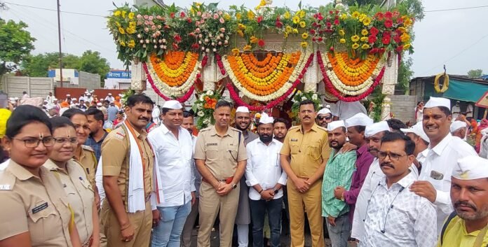 संत निवृत्तीनाथ पालखीचे पोलीस अधीक्षक व चिपाडे परिवाराच्या वतीने स्वागत