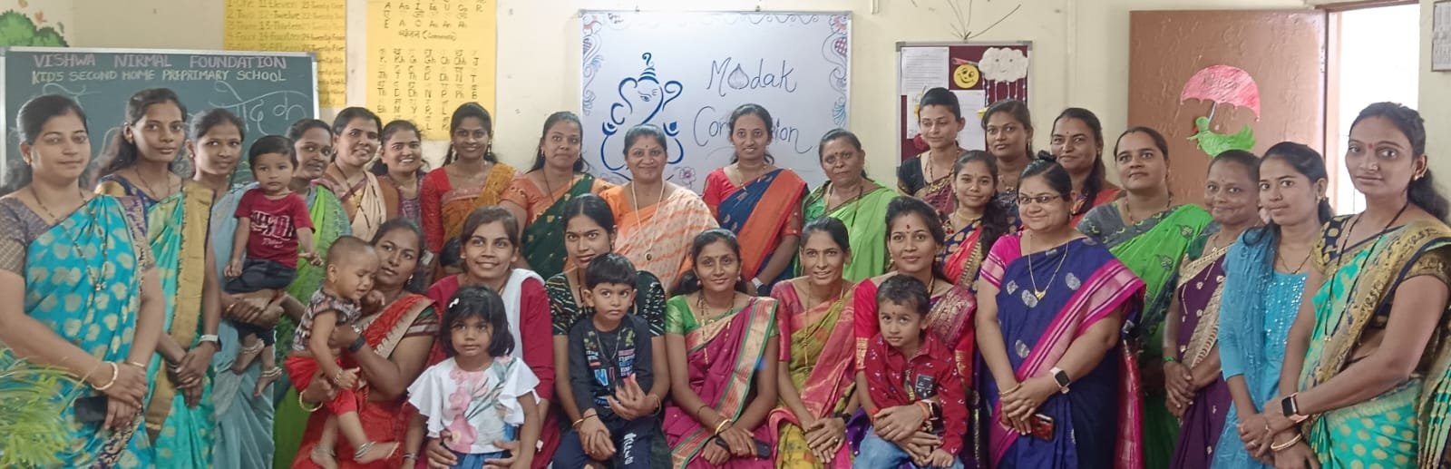 नगर ः विश्व निर्मल फौंडेशन संचलित किड्स सेकंड होम प्री प्रायमरी स्कुल मधे श्री गणेश उत्सवा निमित्त मोदक स्पर्धा आयोजित करण्यात आले. या वेळी कार्यक्रमाचे अध्यक्षस्थानी मा. नगरसेविका सौ.वीणाताई बोज्जा होते. कार्यक्रमांस प्रमुख पाहुणे म्हणून व स्पर्धेचे परीक्षक म्हणून सौ. सुचिता भावसार हे होते.