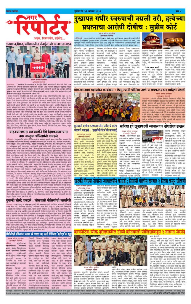 Homeक्राईम क्राईम 21 By baba dhakane 30/08/2023 0 121 WhatsAppFacebookTwitterTelegramPinterestLinkedinReddItTumblrDigg Share WhatsAppFacebookTwitterTelegramPinterestLinkedinReddItTumblrDigg Previous article21Next articleपाथर्डी-शेवगाव तालुक्यात नुकसान झालेल्या पिकांचे पंचनामे करून शेतकऱ्यांना दिलासा द्यावा baba dhakanehttps://sangramsattacha.in Related Articles महाराष्ट्र कोपरगावातील नरभक्षक बिबट्या अखेर ठार, 15 दिवसांत घेतलेला दोघांचा जीव अहमदनगर जिल्हा बुऱ्हाणनगर येथे माजीमंत्री आमदार शिवाजीराव कर्डिले यांचा शोकाकुल वातावरणात दशक्रियाविधी अहमदनगर जिल्हा मंत्री कोकाटेकडून कर्डीले कुटुंबीयांचे सांत्वन LEAVE A REPLY Cancel reply Comment: Please enter your comment! Name:* Please enter your name here Email:* You have entered an incorrect email address! Please enter your email address here Website: Save my name, email, and website in this browser for the next time I comment. Δ Stay Connected0FansLike3,912FollowersFollow22,800SubscribersSubscribe - Advertisement - Latest Articles महाराष्ट्र कोपरगावातील नरभक्षक बिबट्या अखेर ठार, 15 दिवसांत घेतलेला दोघांचा जीव अहमदनगर जिल्हा बुऱ्हाणनगर येथे माजीमंत्री आमदार शिवाजीराव कर्डिले यांचा शोकाकुल वातावरणात दशक्रियाविधी अहमदनगर जिल्हा मंत्री कोकाटेकडून कर्डीले कुटुंबीयांचे सांत्वन महाराष्ट्र केंद्रीय गृहमंत्री अमित शाह यांनी घेतले श्री साईबाबा समाधीचे दर्शन क्राईम Load more